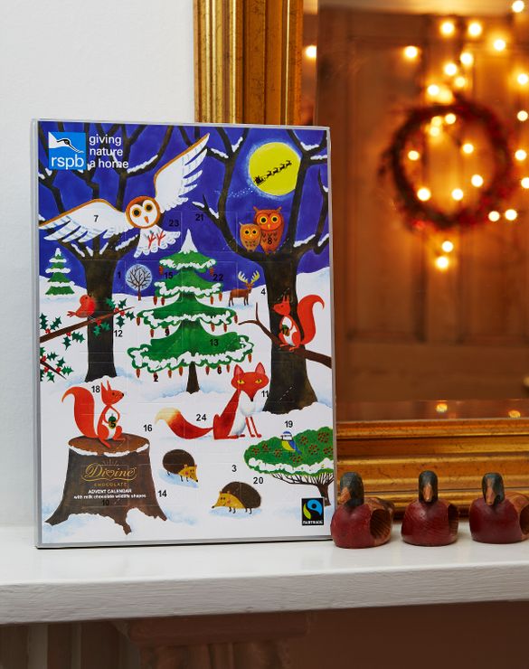 Divine Chocolate, the farmer–owned chocolate company is pleased to announce a new partnership with the RSPB. The first in a series of upcoming chocolate products is this delightful new advent calendar for Christmas 2015. Featuring a very sweet illustration of a snowy woodland scene, you'll find a Divine smooth milk chocolate animal or bird behind each door, making it an ideal gift for both wildlife and chocolate lovers alike. RRP of £4.00