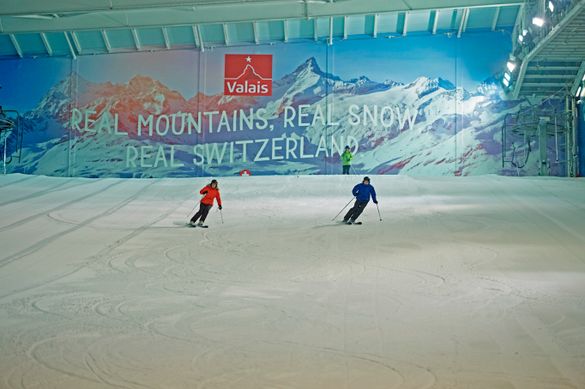 The walls of the indoor ski slope now show the Alpine panorama of the Valais to get skiers immediately into the Swiss mood. From 7-9 October, a public launch event will be the official start of the partnership. Besides the branding of the indoor slope, there will be Swiss specialties available in the restaurant and a check-in area representing Swiss International Air Lines.