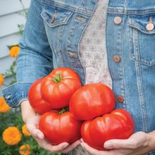 This shapely variety is our new glamorous superstar, she is gorgeously juicy and no shrinking violet as she is very prolific. Lovingly bred by Burpee Europe, these large jewels of round, vibrant, pure-red 280–350g fruits entice with heirloom aromatics and tangy tomato sweetness.
