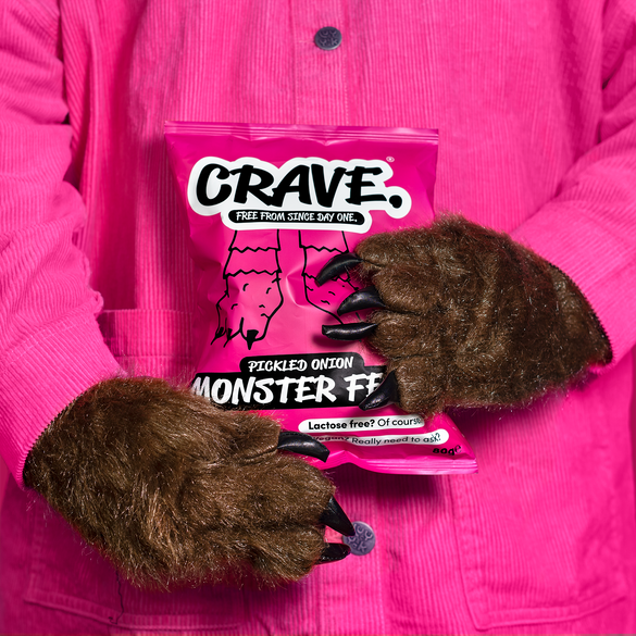 Crave's Pickled Onion Monster Feet are kicking out the allergens but keeping all the flavour. Packing a tangy pickled onion punch; devour them at your desk, serve up as a treat at kids' parties or savour with a cold beer. Pickled onion flavour maize snacks.