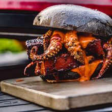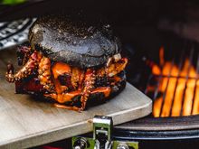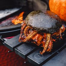 Serving up a guaranteed head-turner for Halloween parties, this insane burger looks like a monster from the deep. Ben Forte, barbecue master at Kamado Joe shares his twist on a surf and turf burger.
