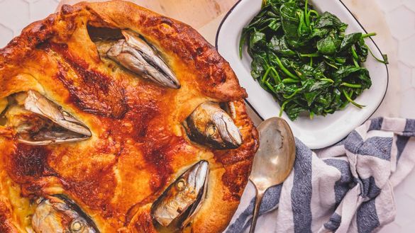 This iconic Cornish dish is the perfect centerpiece for your dinner table to wow your guests. The fish are designed to 'gaze at the stars' and don't worry – you don't have to eat the heads. Legend has it this pie was created after a brave fisherman, Tom Bawcock, ventured out into stormy seas to fish when the townsfolk of Mousehole were facing starvation. He returned triumphantly with an abundance of seven types of fish, which were cooked up in a pie and served to the community.