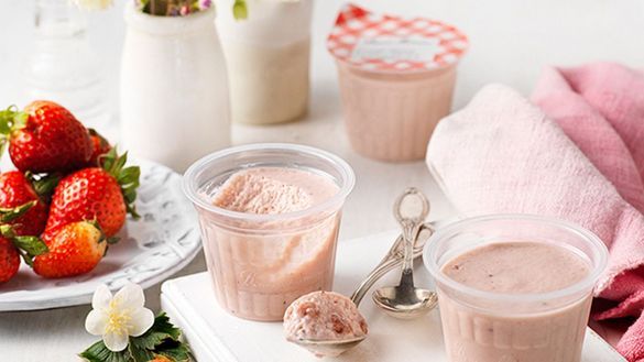 - Whisk the egg white to soft peaks, add the sugar and whisk until stiff. Fold into the strawberry mixture and divide between four individual serving dishes.