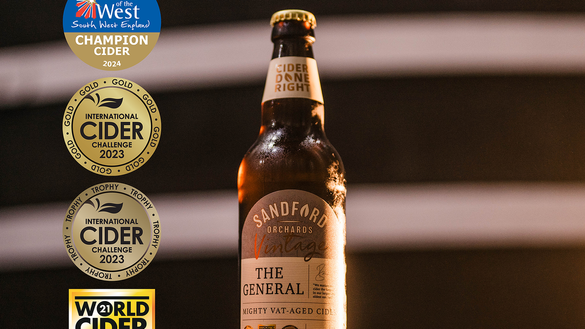 The General, a world class vintage cider produced by independent, family-owned Sandford Orchards has just added another award to its trophy cabinet. It was named Champion Cider by Taste of the West at their ceremony last month.
