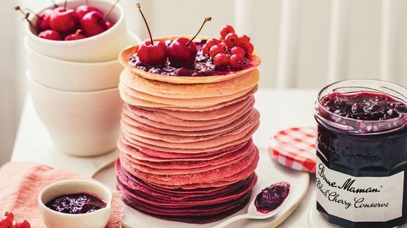 Start Valentine's Day morning by treating your special someone to an easy, yet impressive 'petit déjeuner'. A plate of delicate, fluffy Ombré Crêpes with classic Black Cherry Conserve makes for a striking centre piece on the breakfast table. Simply serve with a glass of fizz to get Valentine's Day off to the perfect start!