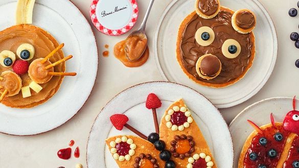 The Bonne Maman range of fruity Conserves and indulgent Spreads are perfect for creating delicious and delightful pancake masterpieces. From cheerful faces made with fresh fruits and spoonfuls of conserve to adorable animal designs, let the kids layer on colour and flavour to make each bite as imaginative as it is delicious. Will it be a picture of Dad, a bear covered in Hazelnut Chocolate Spread, a beautiful flower with a jammy centre or a rocket ship coated in Caramelised Apple?