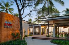 The resort's beachside restaurant has undergone a complete renovation and reopened as Sea. Fire. Salt. – the new signature lunch and dinner venue specialising in Himalayan salt brick cooking. Guests can expect prime cuts and seafood seared to perfection using a technique that heats pure salt blocks to 200 degrees, infusing dishes with subtle, mineral-rich flavours while enhancing their natural taste. Interior-wise, the breezy venue is divided between a more formal dining area on the ground floor and a relaxed terrace on the upper deck, shaded by parasols and palm trees.