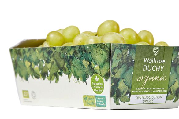 The move to a cardboard punnet for Waitrose Duchy Organic grapes is part of the Waitrose & Partners sustainable packaging pledges made to His Royal Highness The Prince of Wales to honour his 70th birthday in November 2018, and demonstrates the potential to move away from plastics whilst preserving the quality and freshness of the fruit.