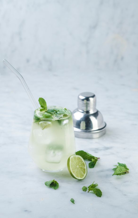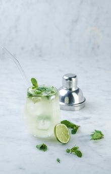 - Muddle the lime juice, and mint leaves in a small jug, crushing the mint as you go – you can use the end of a rolling pin for this. Pour into a tall glass and add a handful of ice.