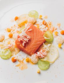Aikens's new menu reflects his ingredient-driven creativity and talent for innovative combinations. Meat lovers are likely to target the pig's trotter packets with sorrel and red wine egg or the 12-hour spiced lamb shoulder with dried fruit and chickpeas.